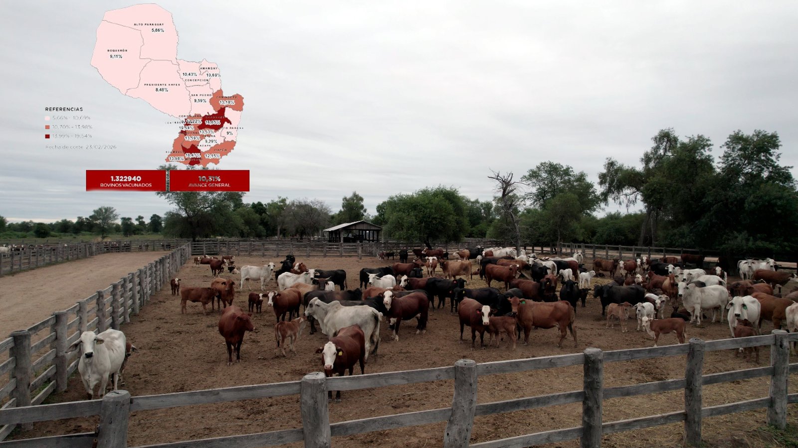 El primer periodo de vacunación contra la fiebre aftosa 2026 en Paraguay superó el 10% de cobertura del rodeo bovino en su primera semana de ejecución. Según el corte de información al 23 de febrero, difundido por el Servicio Nacional de Calidad y Sanidad Animal (Senacsa), ya fueron vacunadas 1.322.940 cabezas, lo que representa un avance del 10,31% a nivel nacional. En paralelo, 10.619 propietarios cumplieron con el registro correspondiente, equivalente al 9,14% del total previsto en esta etapa. El mayor avance en vacunación de bovinos se registra en el departamento Central, que lidera con 19,54% del rodeo inmunizado. Le siguen Misiones, con 18,41%, y Caaguazú, con 16,85%, todos por encima de la media nacional (10,31%). En cuanto al registro de propietarios, Misiones encabeza la lista con 16,95% de productores ya registrados. Ñeembucú alcanza 14,09% y Paraguarí 13,59%. Por su parte, Alto Paraguay presenta el menor avance en cabezas vacunadas,