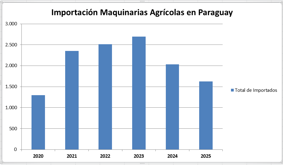 La importación de maquinarias agrícolas en Paraguay muestra un cambio de ritmo en los últimos años. Tras varios años de fuerte expansión, el ingreso de equipos 0 km cayó de manera sostenida en 2024 y 2025, según datos de la Cámara de Distribuidores de Automotores y Maquinarias (CADAM).