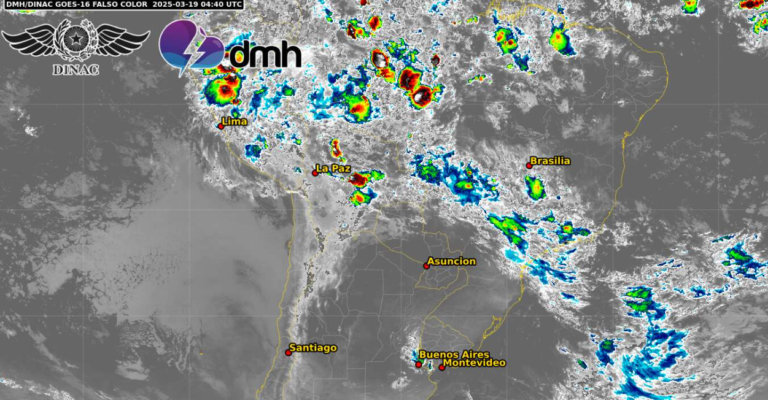 Un sistema de tormentas ingresó al sur del territorio y se prevé que avance durante la jornada hacia gran parte del país, con lluvias acumuladas de hasta 120 mm, ráfagas cercanas a 100 km/h, descargas eléctricas y posible caída de granizos, según la Dirección de Meteorología e Hidrología, que mantiene vigentes alertas en varias zonas.