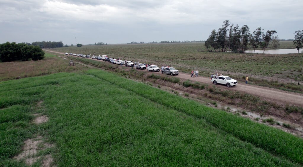 La segunda jornada tuvo lugar en la Estancia Isla Corá, en Arroyos y Esteros, donde se realizaron seis paradas técnicas en campo. Los asistentes pudieron observar de cerca las prácticas implementadas para transformar terrenos difíciles, como suelos con alta acidez y zonas bajas con problemas de drenaje, en campos productivos y sostenibles.