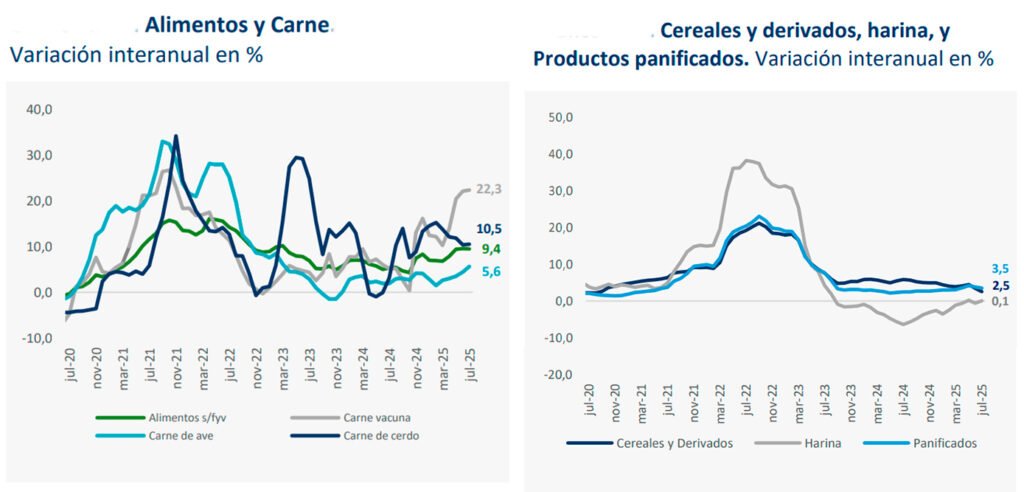 En julio también se observaron subas en diversos servicios, como turismo, gastronomía, trabajo doméstico, cuidado personal, transporte y servicios de salud. Los combustibles registraron aumentos en todas sus variantes. En contraste, los bienes durables importados, como vehículos y electrodomésticos, bajaron de precio debido a la apreciación del guaraní frente al dólar.