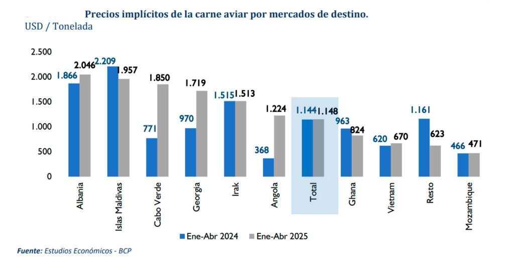 El BCP destaca que a abril del 2025 un total de 14 países constituyeron los destinos de las exportaciones de carne aviar.