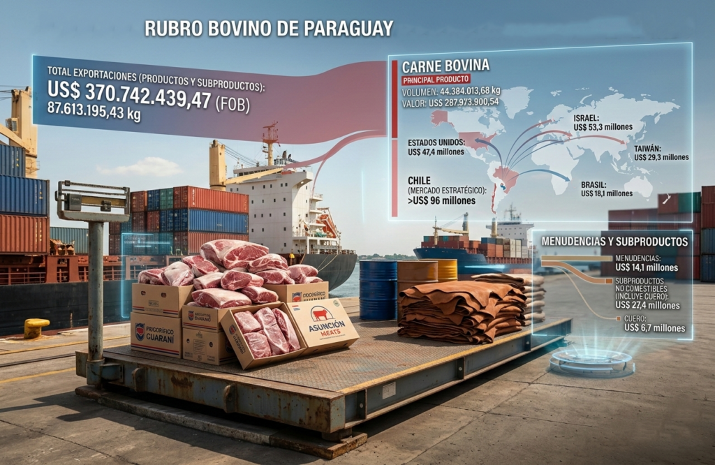 El sector cárnico paraguayo mantiene un ritmo dinámico en el inicio del año con Chile que se consolida como el principal comprador de carne vacuna. Los subproductos no comestibles, incluyendo el cuero también tienen un registro de ingreso interesante de divisas para la balanza comercial del rubro pecuario