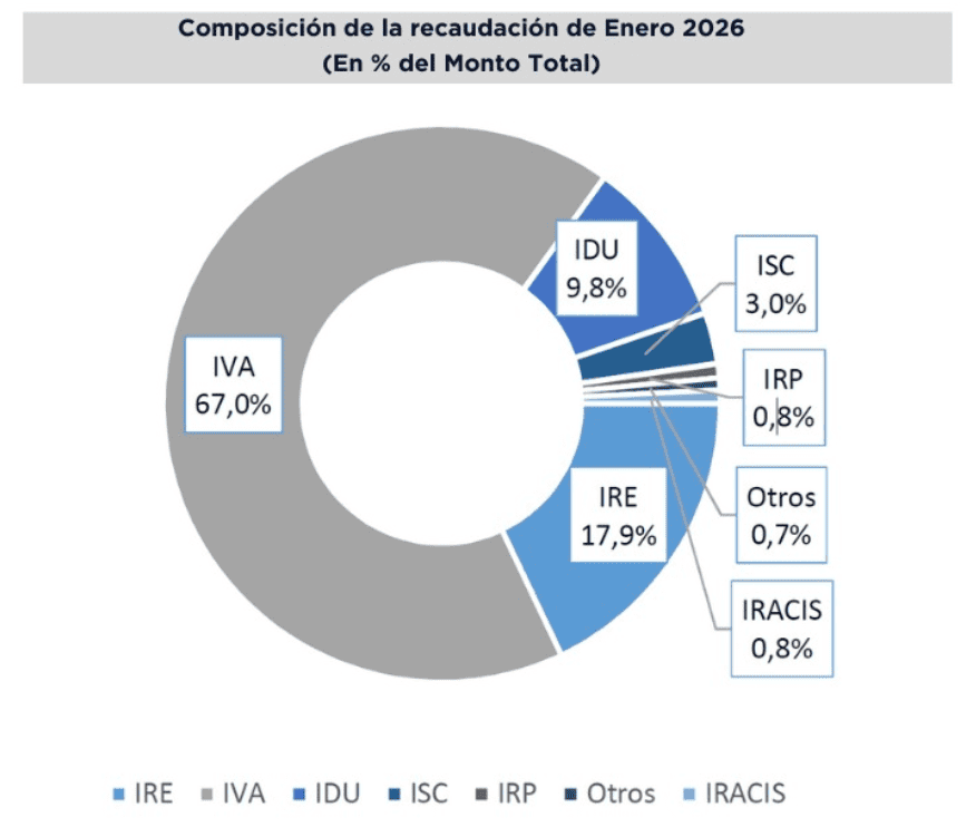 En términos de recaudación total acumulada de enero, se generó un crecimiento de 0,7%, que representa un monto total de ₲. 3.209.894 millones más que en el mismo periodo del 2025.